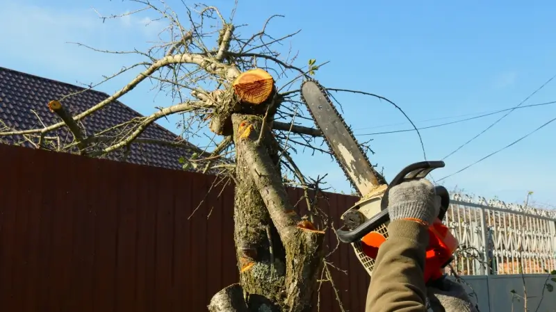 The Grounds Guys provide a comprehensive guide on safely cutting down a tree: